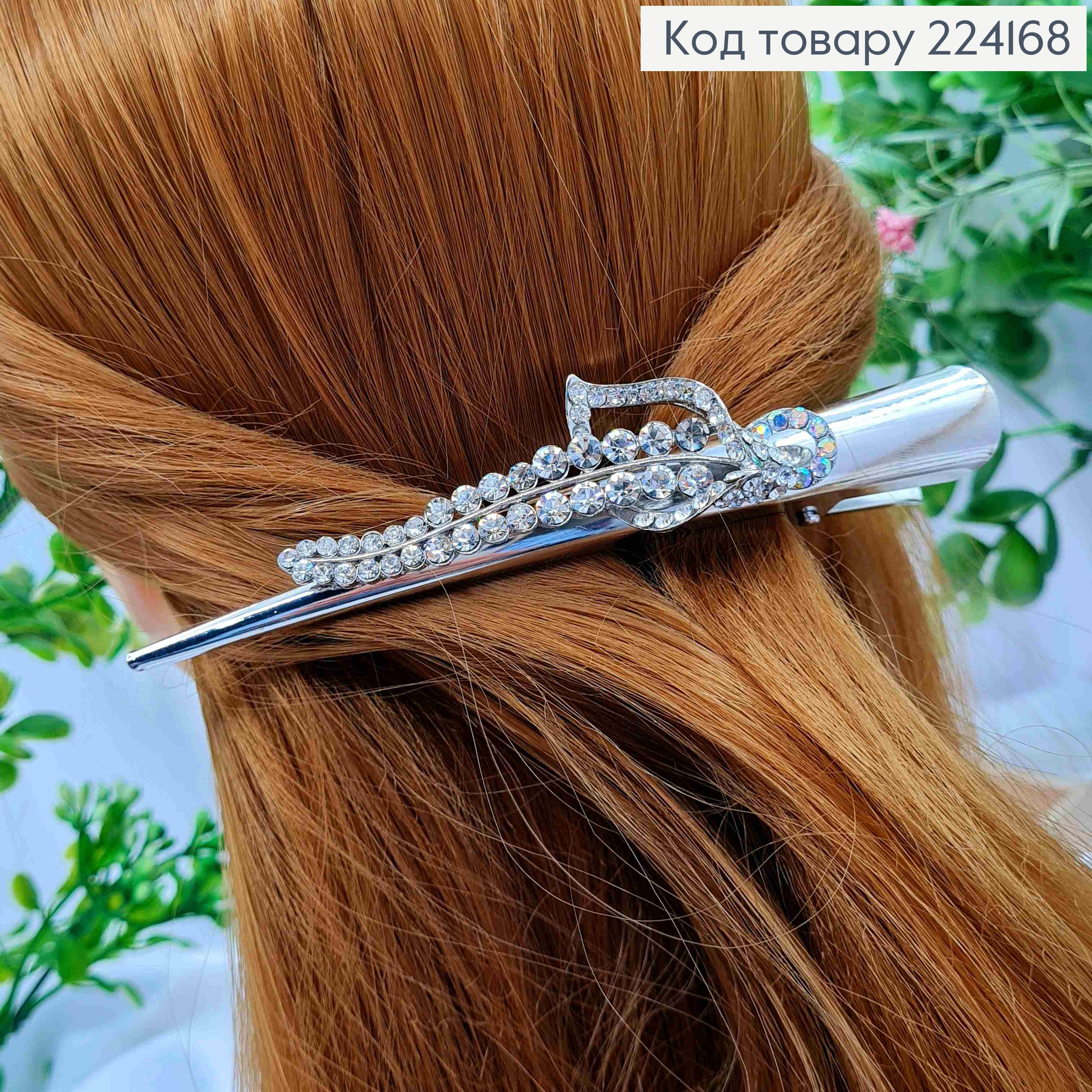 Заколка стрела металл с цветком в блестящих камнях, серебряного цвета, 13см. 224169 фото