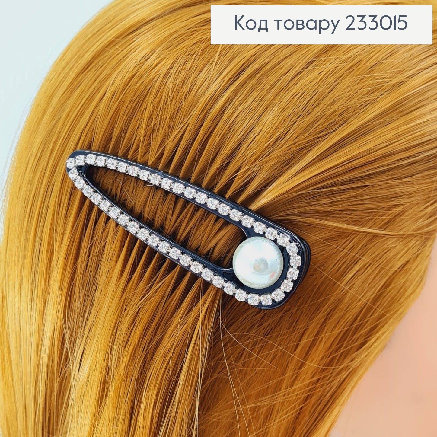 Заколка Стрела пластик 8 см черная с камнями и жемчугом