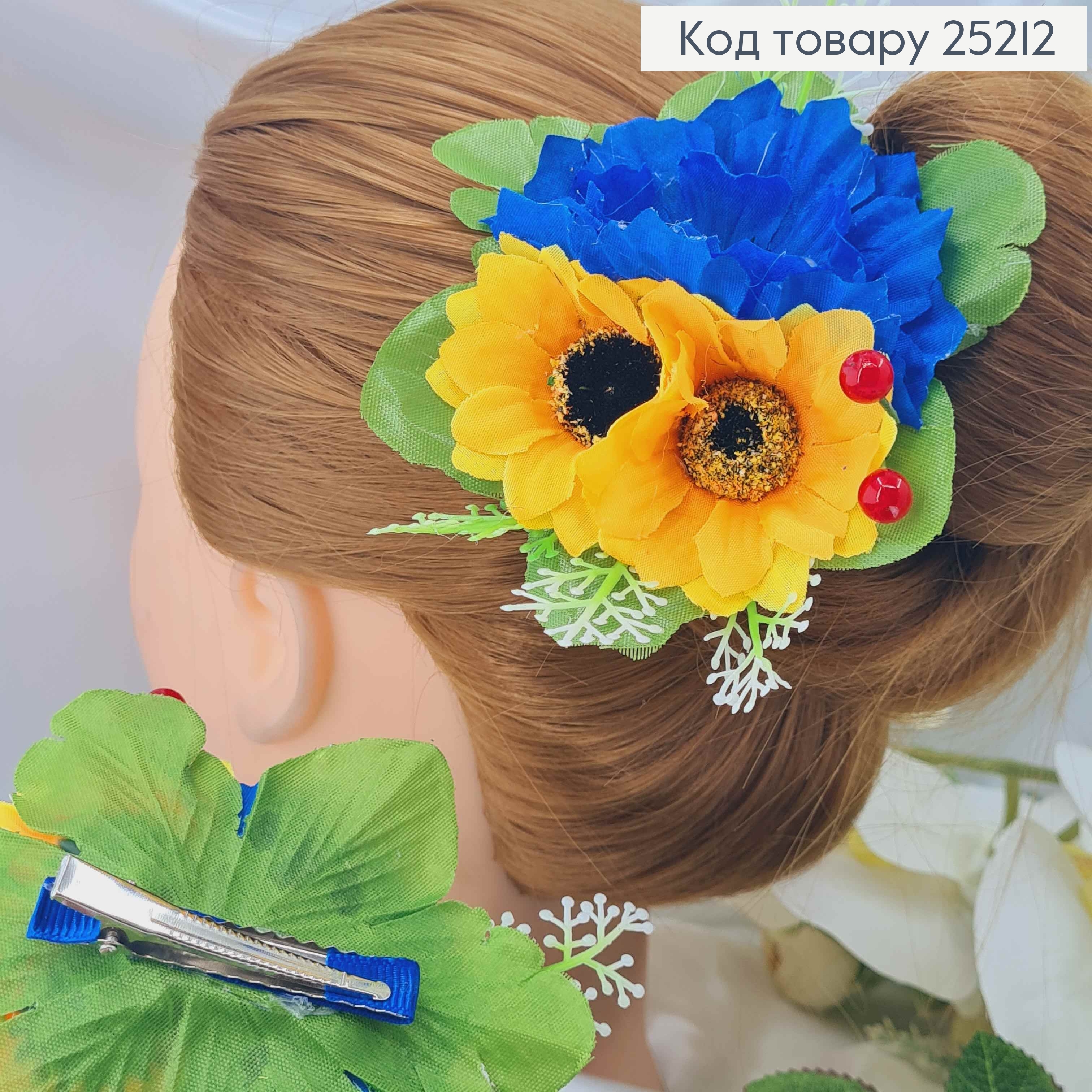 Заколка с хризантемой (желто-синя), 7см, Україна 276048 фото
