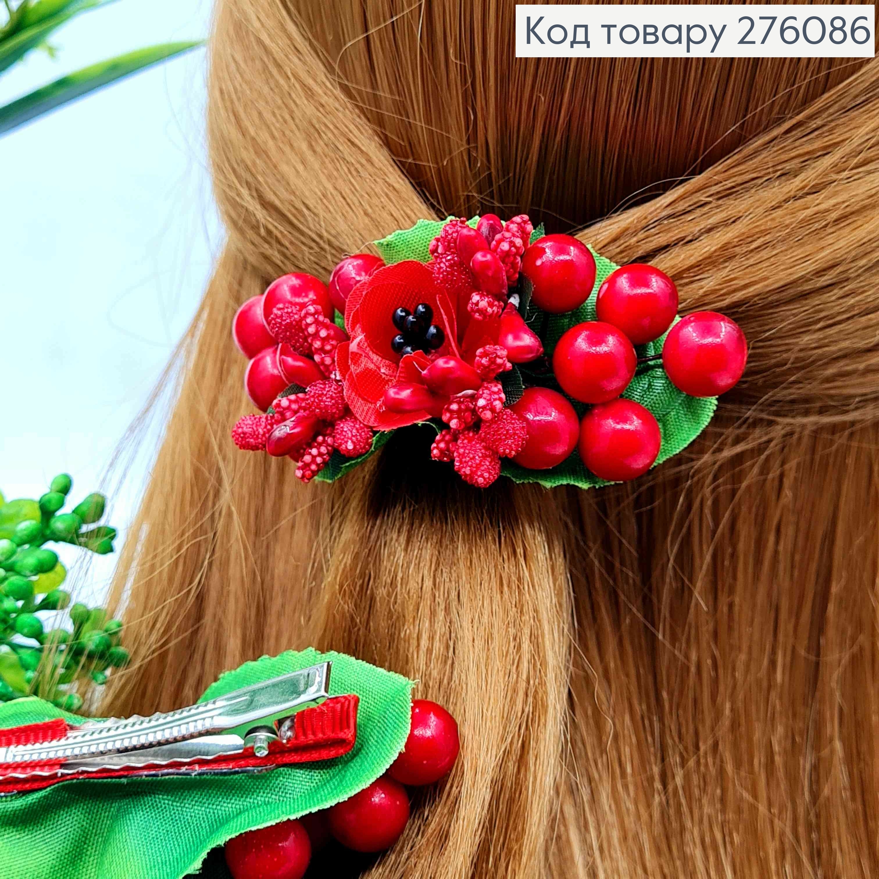 Заколка стрела с Красным Маком и Калиной + Красное приложение, заколка 5см, композиция 8см, ручная работа