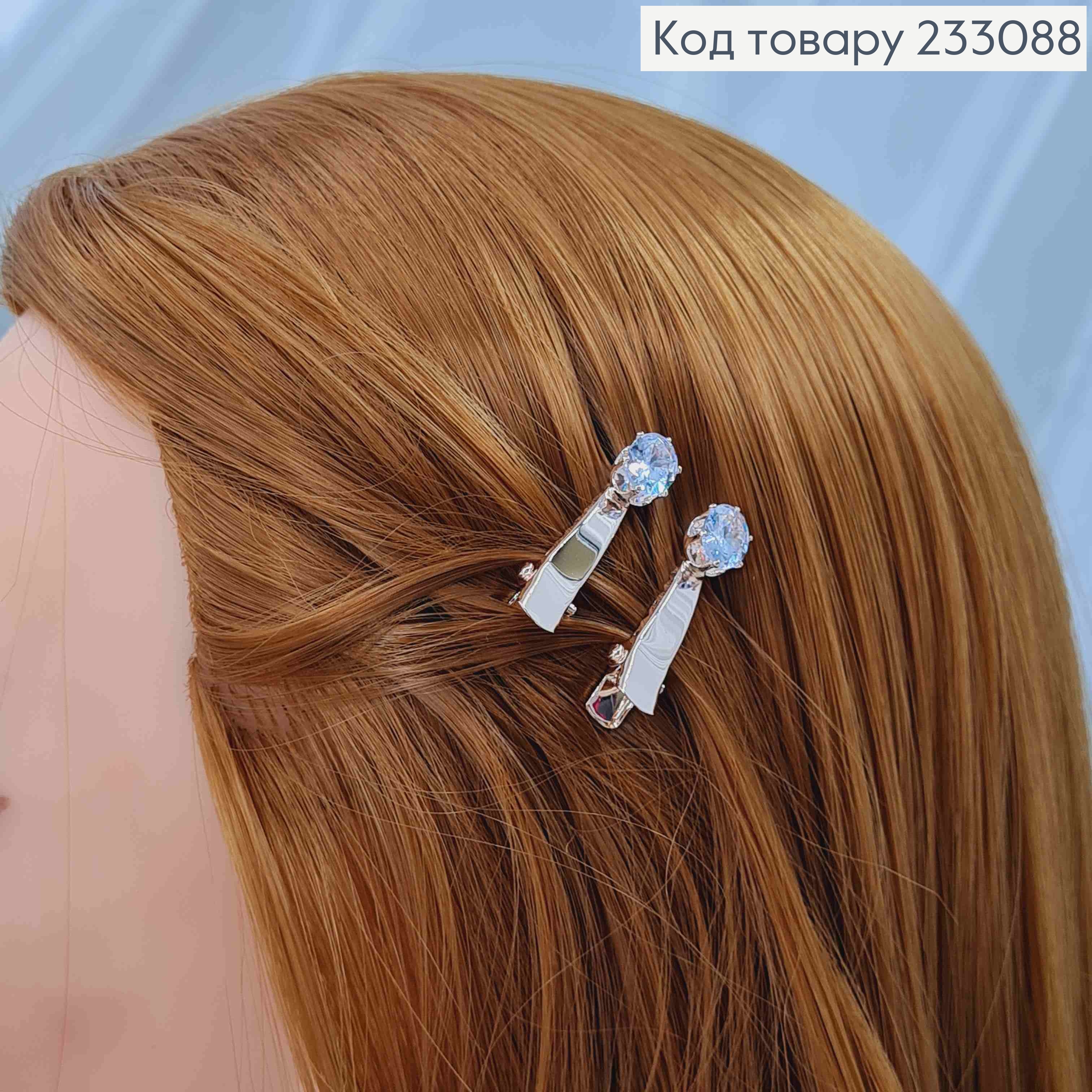 Набор: заколка Стрела (2шт/уп) с блестящим Квадратным камнем, 3,5см, Золотая/Серебряная в ассортименте 233153 фото
