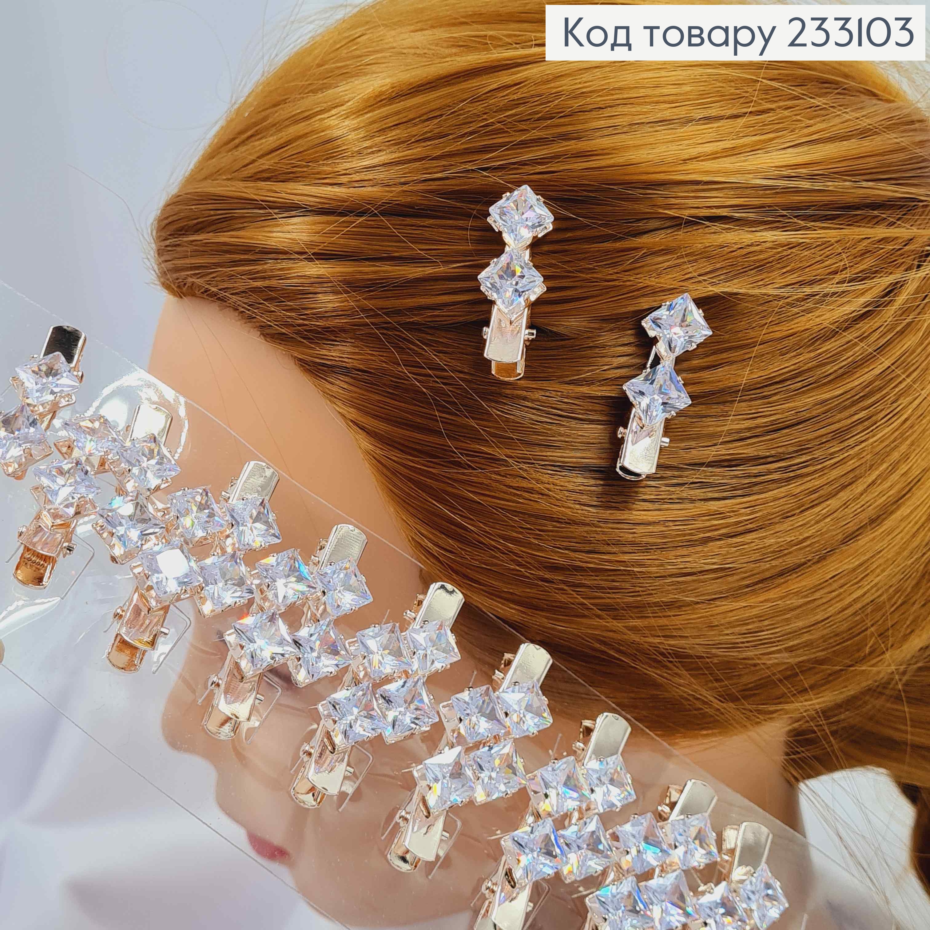 Набор заколок (2шт), золотого цвета, с большими двумя квадратными камешками, 3см.
