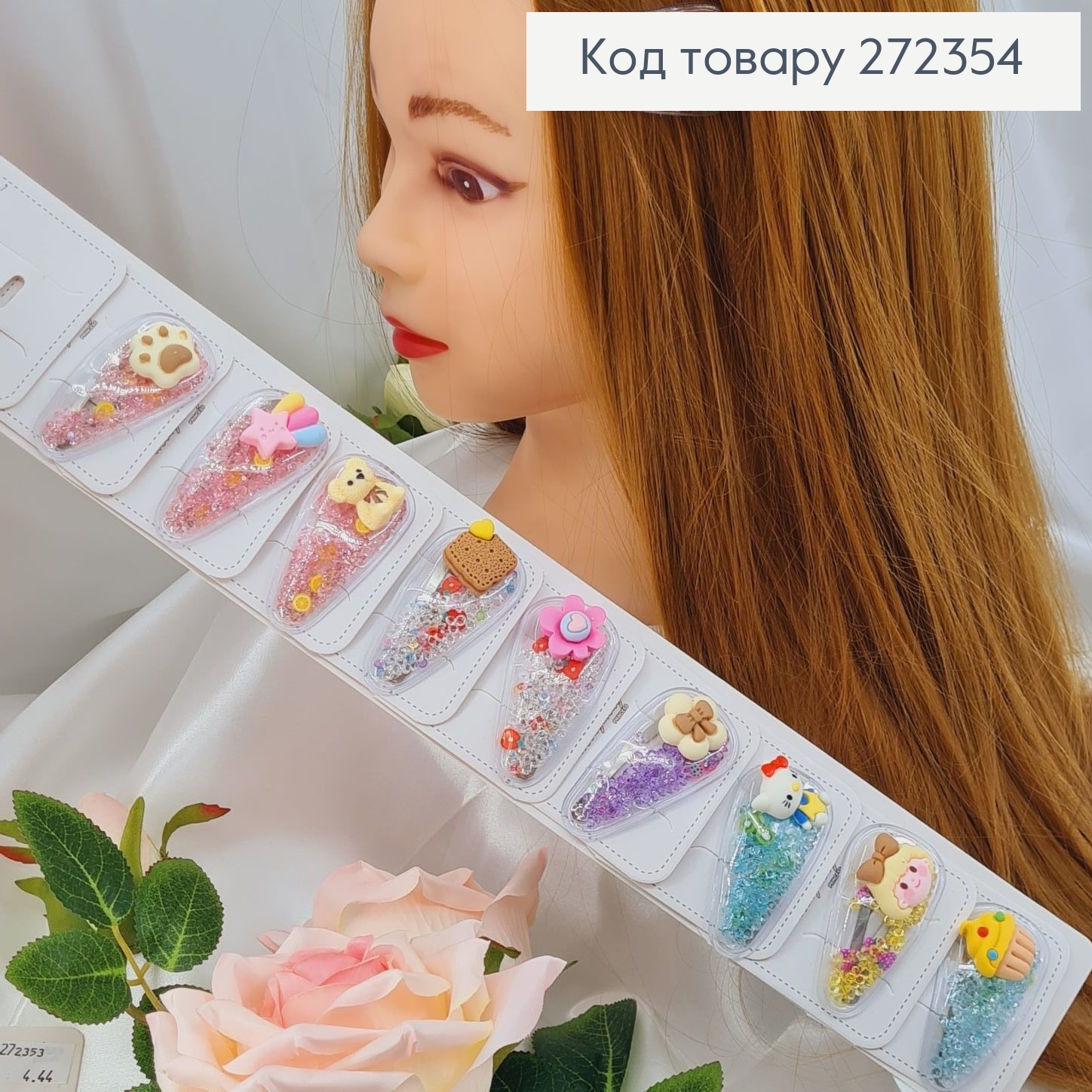 Набор заколка тик-так (20шт), "Цветок" с Камешками, Пастельные цвета, заколка 4,7см, цветок 2,5см 271519 фото