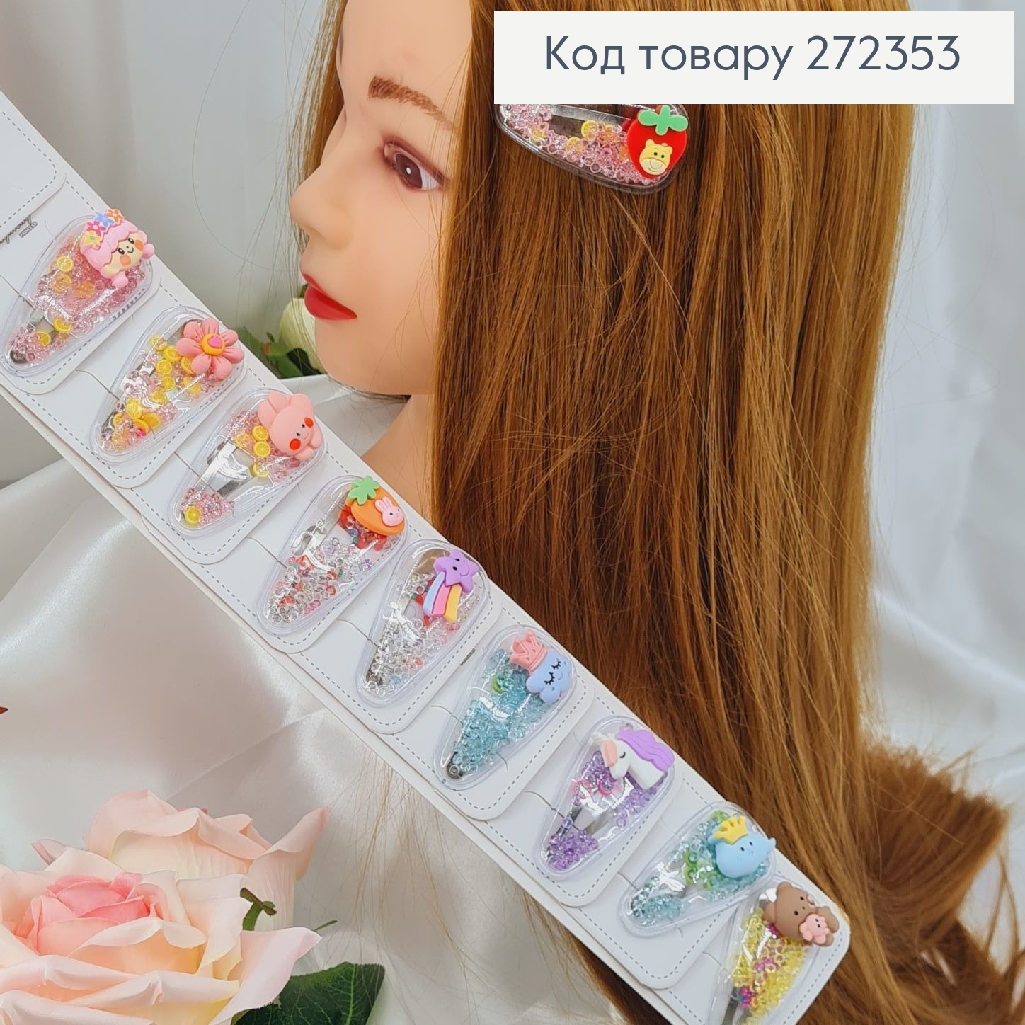 Набор заколка стрела (8шт), "Веселые Зверюшки", Пастельные цвета, заколка 2см, зверьки 1,5*1,5см 271522 фото