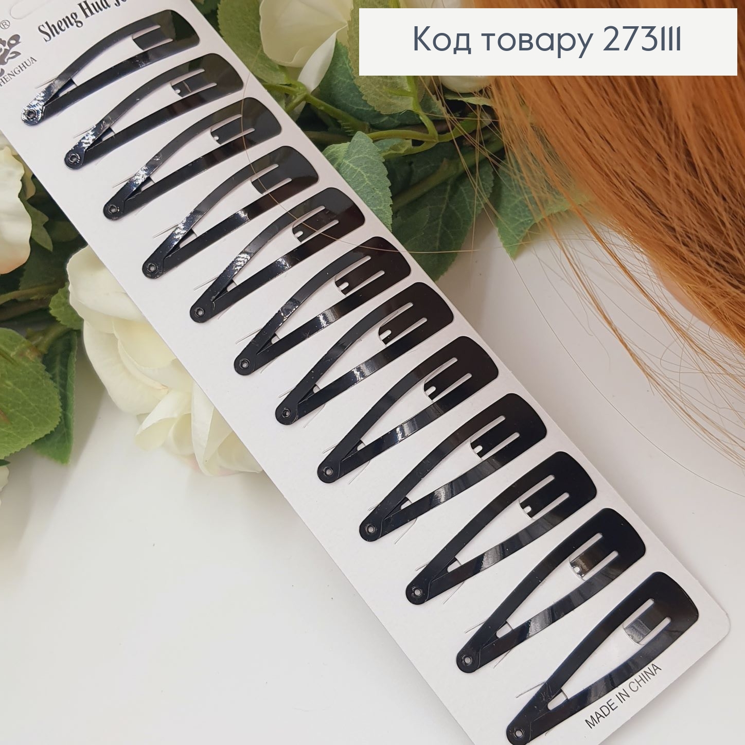 Заколка Тик-так чорная, 5,5см 12шт/уп