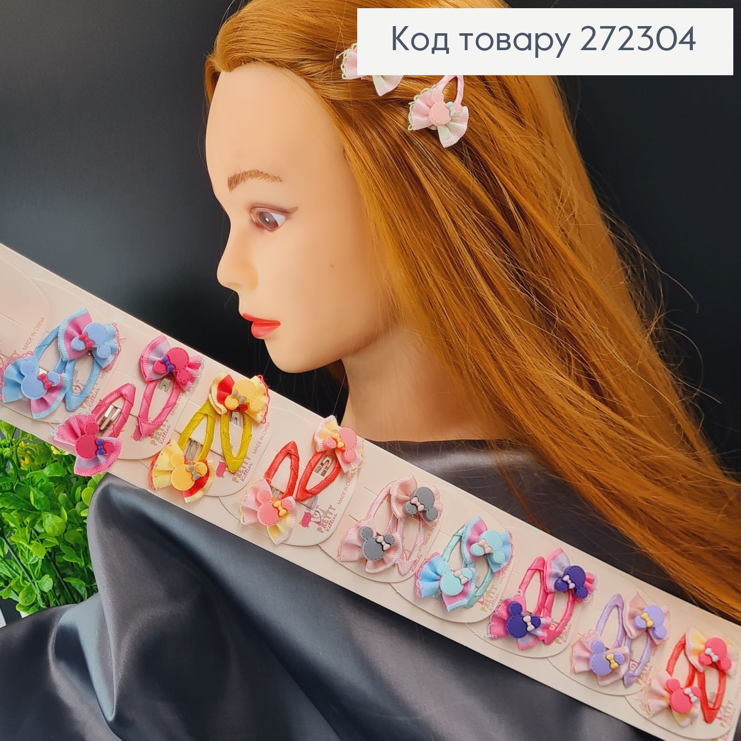 Набор заколка тик-так (20шт), "Бантик" с Камешками, Пастельные цвета, заколка 4,7см, бантик 2,5см. 271518 фото