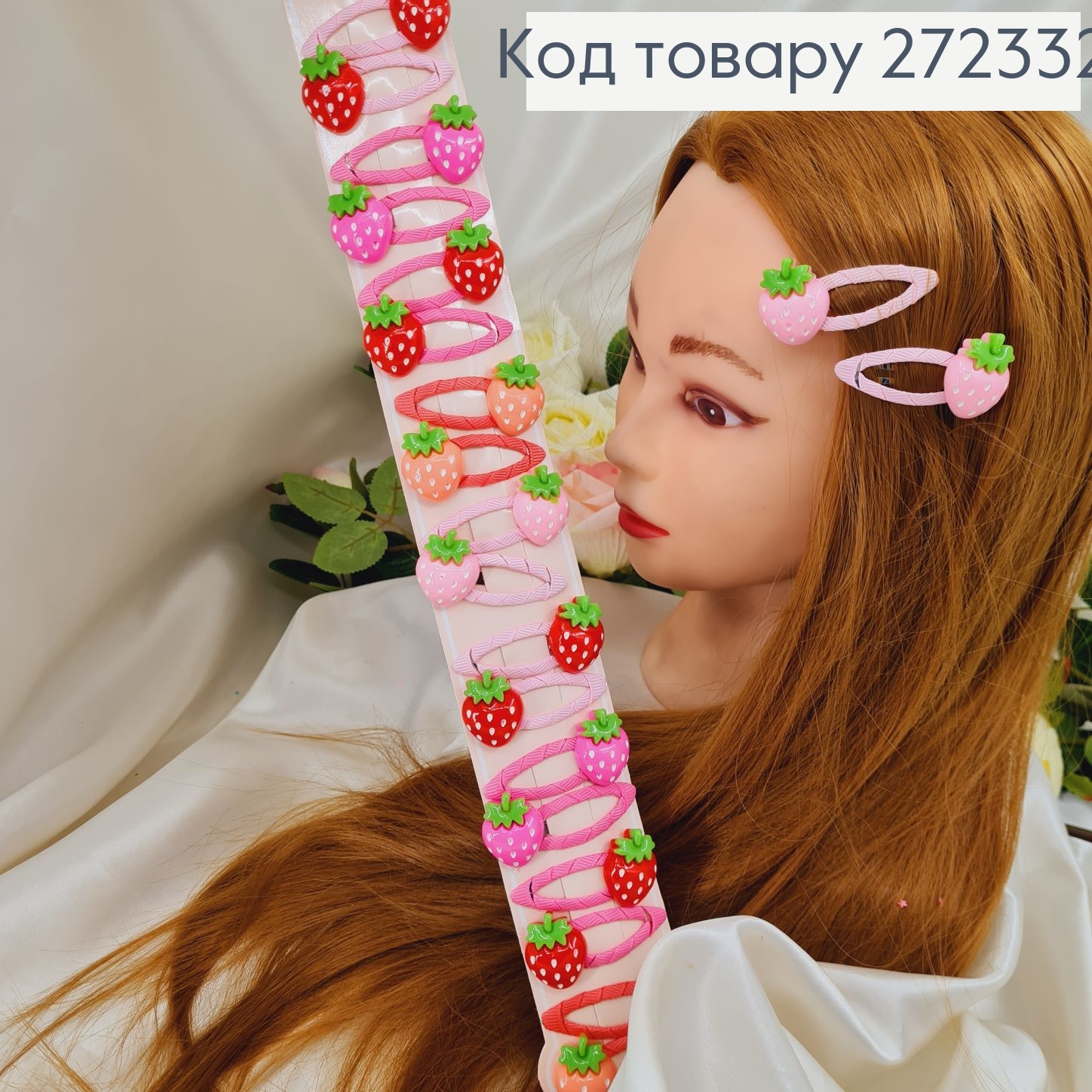 Заколка ток так детская Клубничка в асс. (10пар)