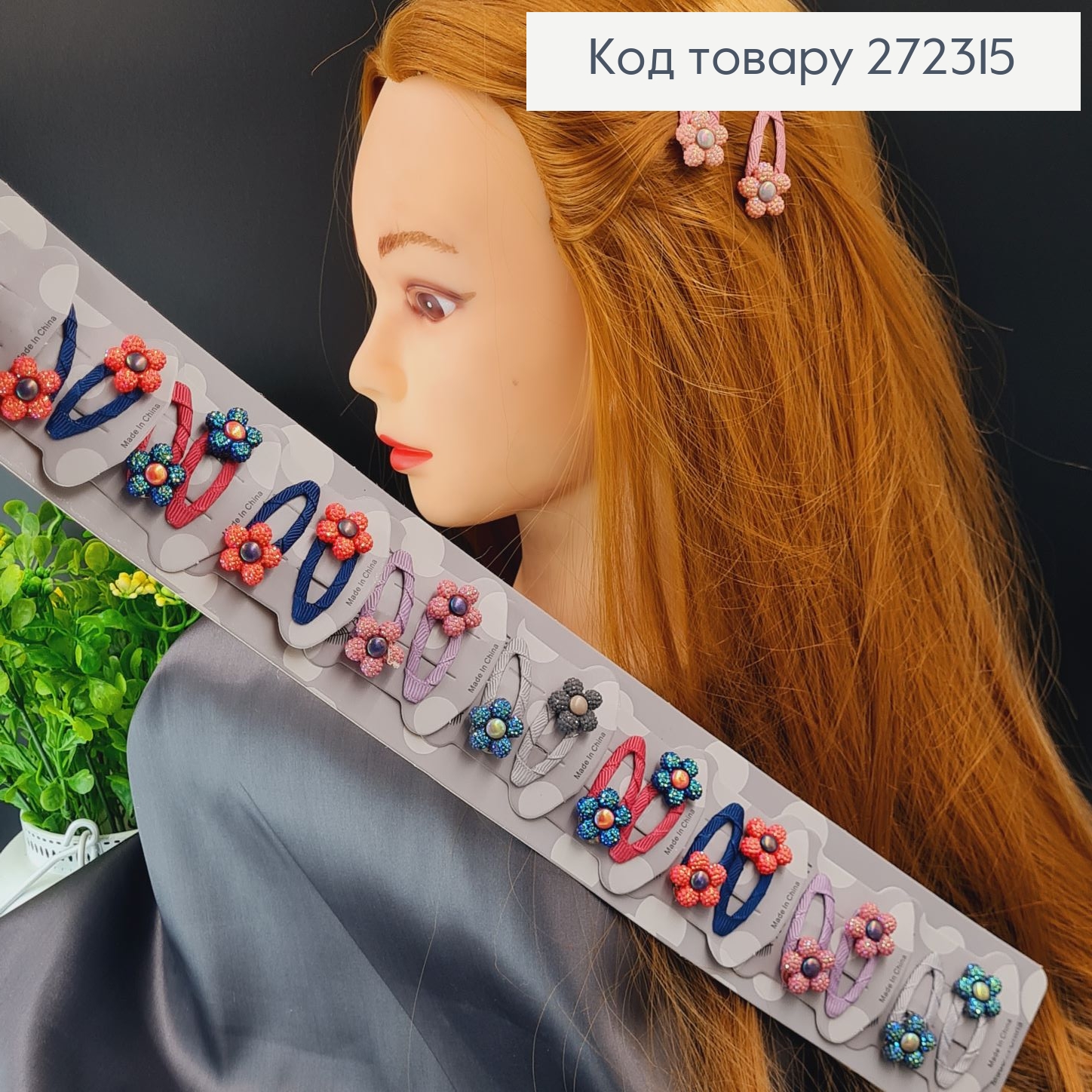 Набор заколка тик-так (20шт), "Цветок" с Камешками, Пастельные цвета, заколка 4,7см, цветок 2,5см 271519 фото