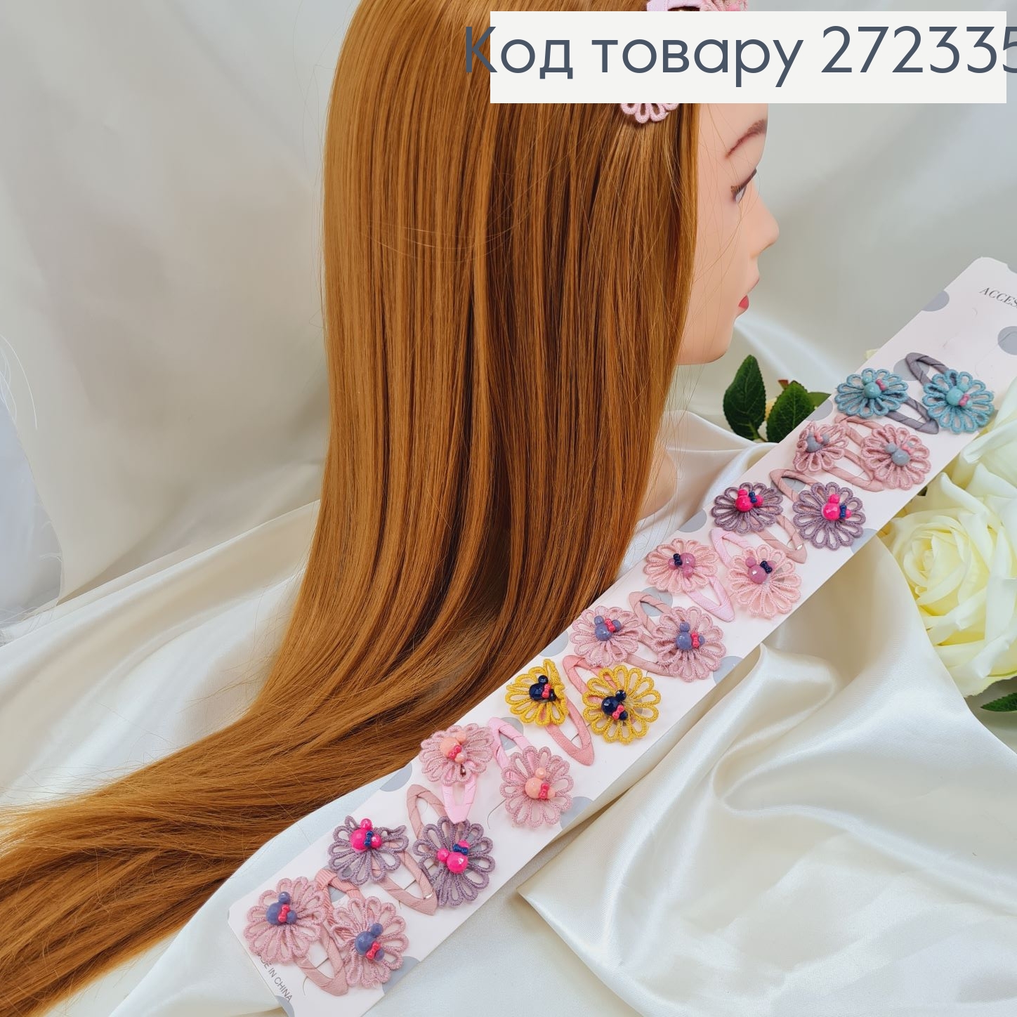 Набор заколка тик-так (20шт), "Цветок" с Камешками, Пастельные цвета, заколка 4,7см, цветок 2,5см 271519 фото
