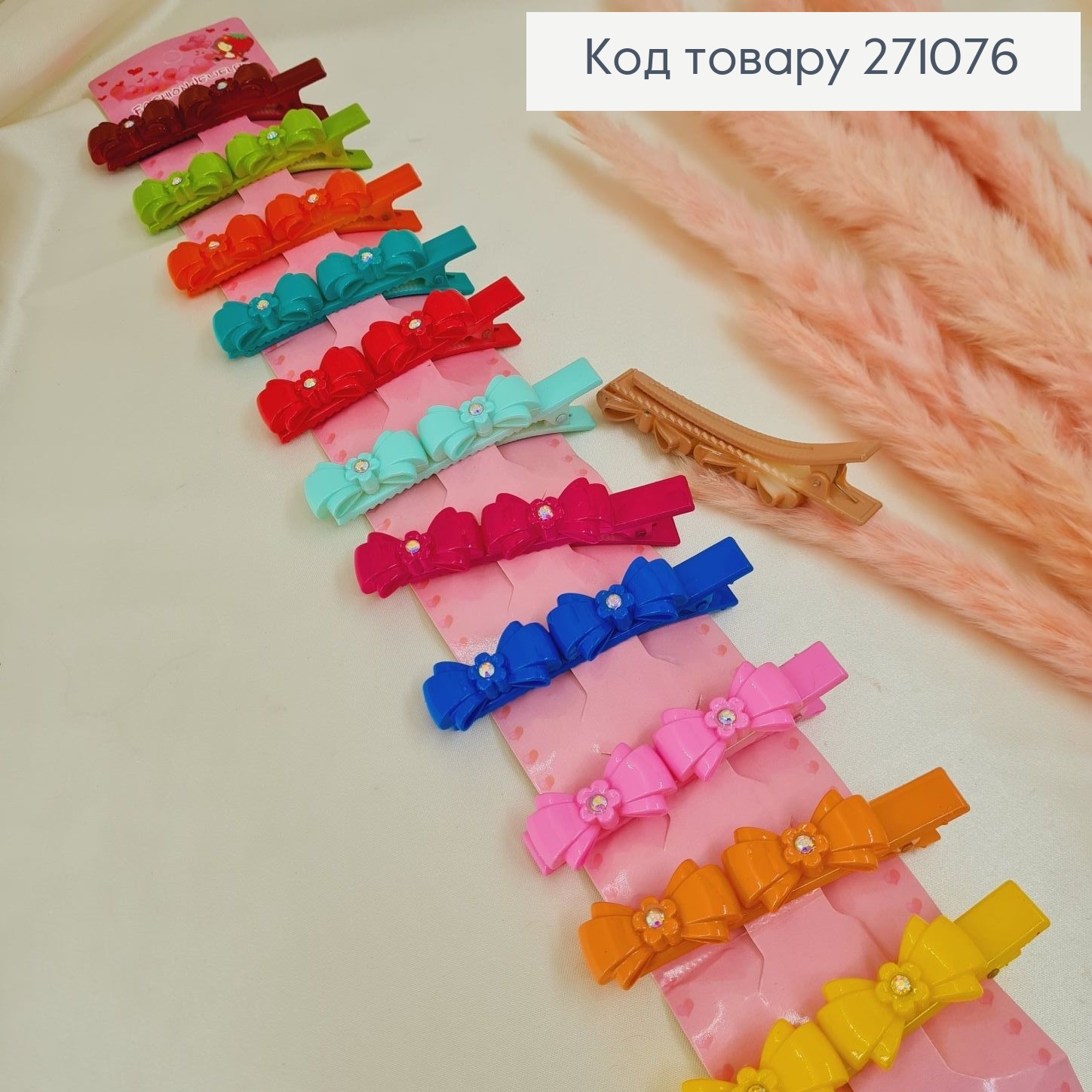 Набор заколка стрела(8шт), Цветок и Бант, Молочно-Пастельного цвета, заколка3,5см, бант4см;6см 271525 фото