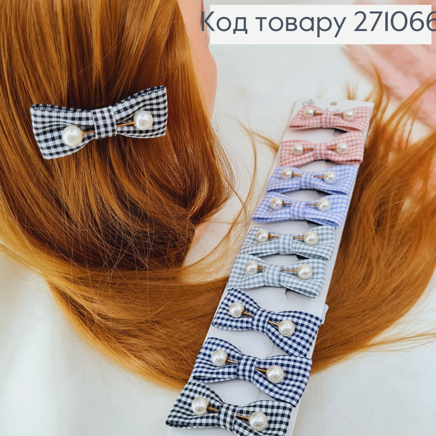 Набор заколка тик-так (20шт), "Бантик" с Камешками, Пастельные цвета, заколка 4,7см, бантик 2,5см. 271518 фото