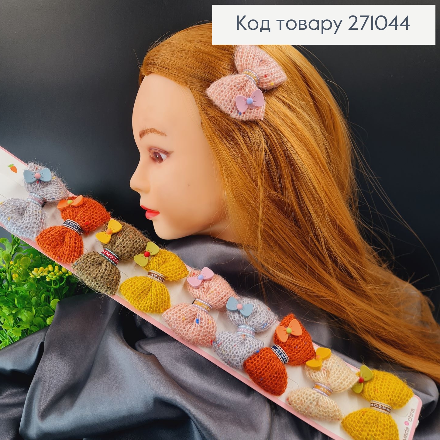 Набор заколка тик-так (20шт), "Бантик" с Камешками, Пастельные цвета, заколка 4,7см, бантик 2,5см. 271518 фото