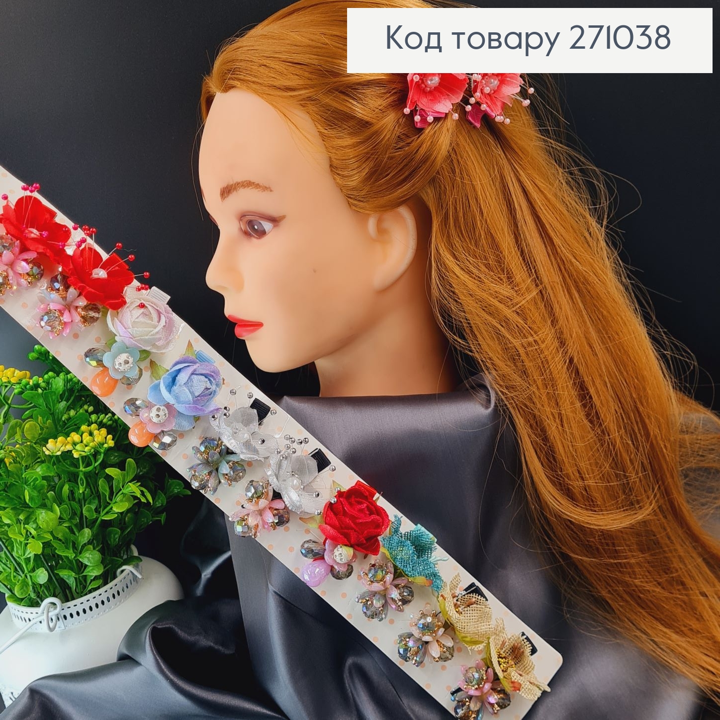 Набор заколка тик-так (20шт), "Цветок" с Камешками, Пастельные цвета, заколка 4,7см, цветок 2,5см 271519 фото