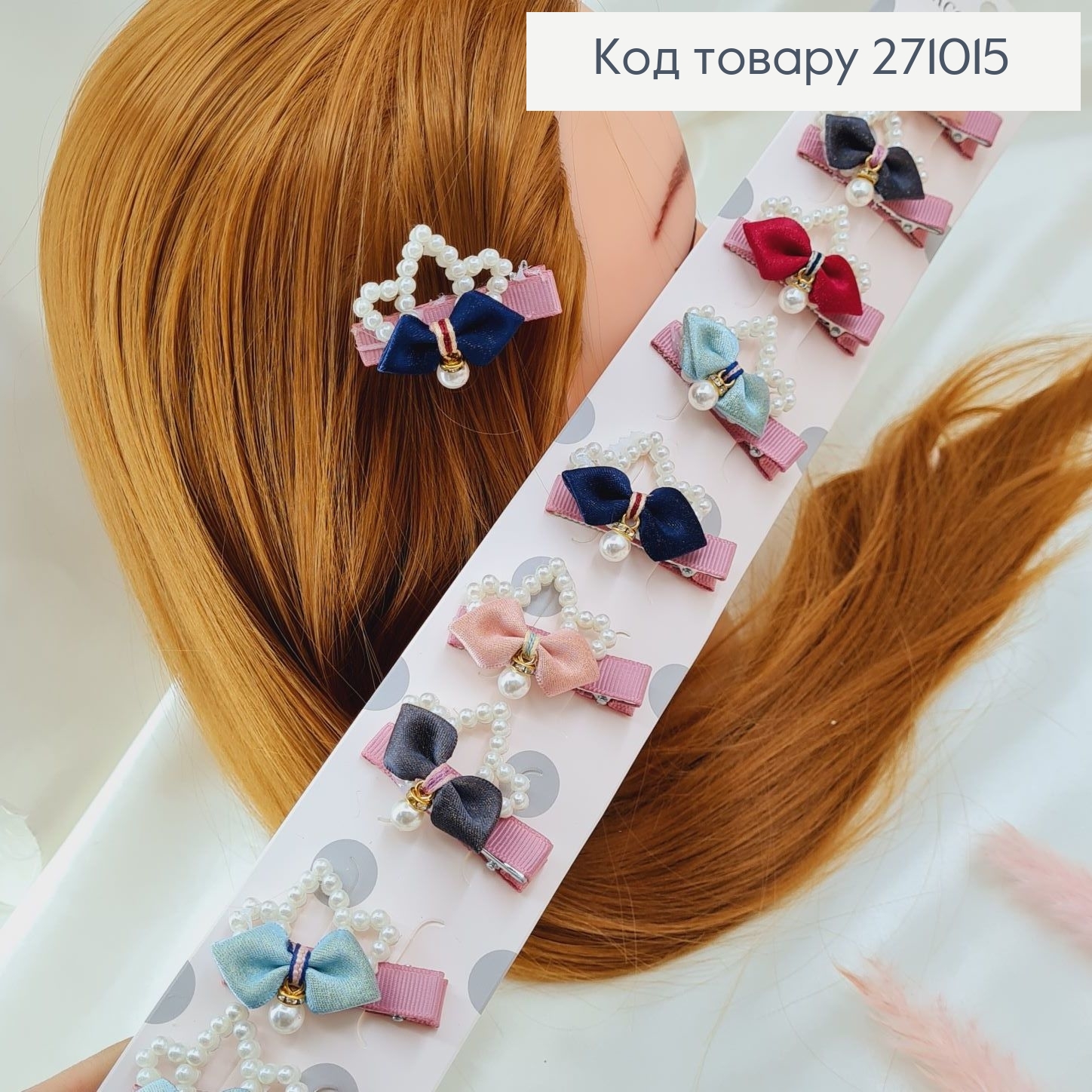 Набор заколка тик-так (20шт), "Бантик" с Камешками, Пастельные цвета, заколка 4,7см, бантик 2,5см. 271518 фото