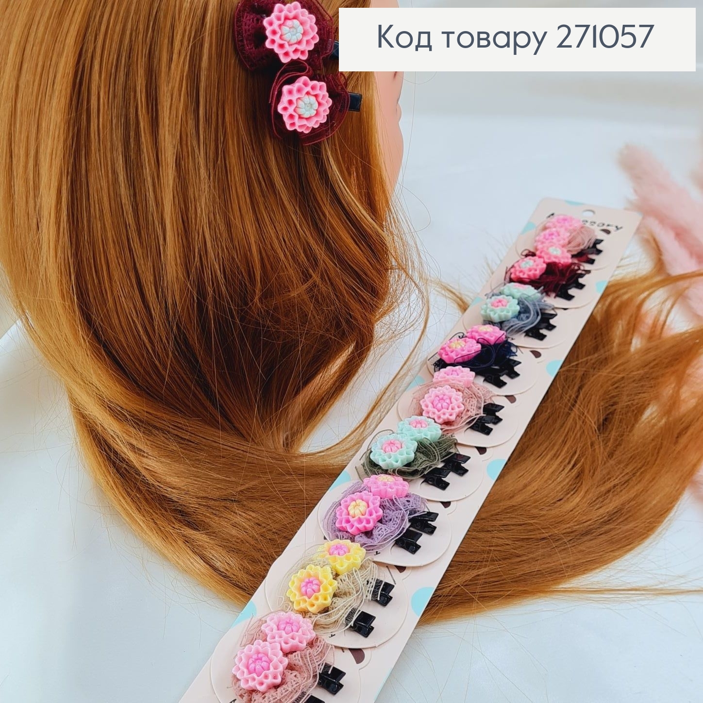 Набор заколка тик-так (20шт), "Цветок" с Камешками, Пастельные цвета, заколка 4,7см, цветок 2,5см 271519 фото