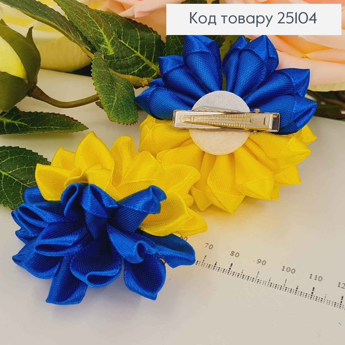 Заколка с хризантемой (желто-синя), 7см, Україна