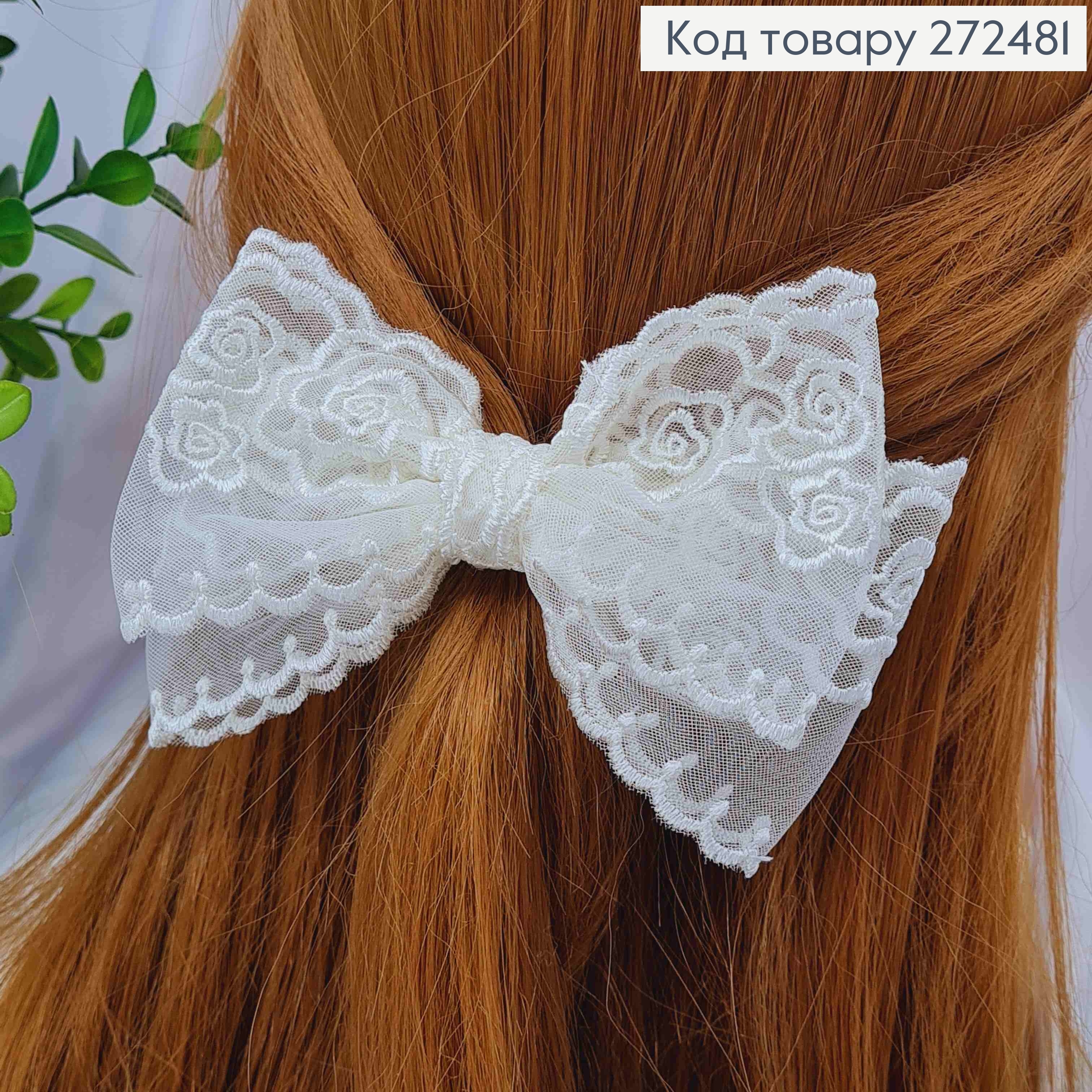 Бант БЕЛОГО цвета, на заколке 5,5см, ткань кружево+атлас, размер 15*25см, Украина. 276158 фото