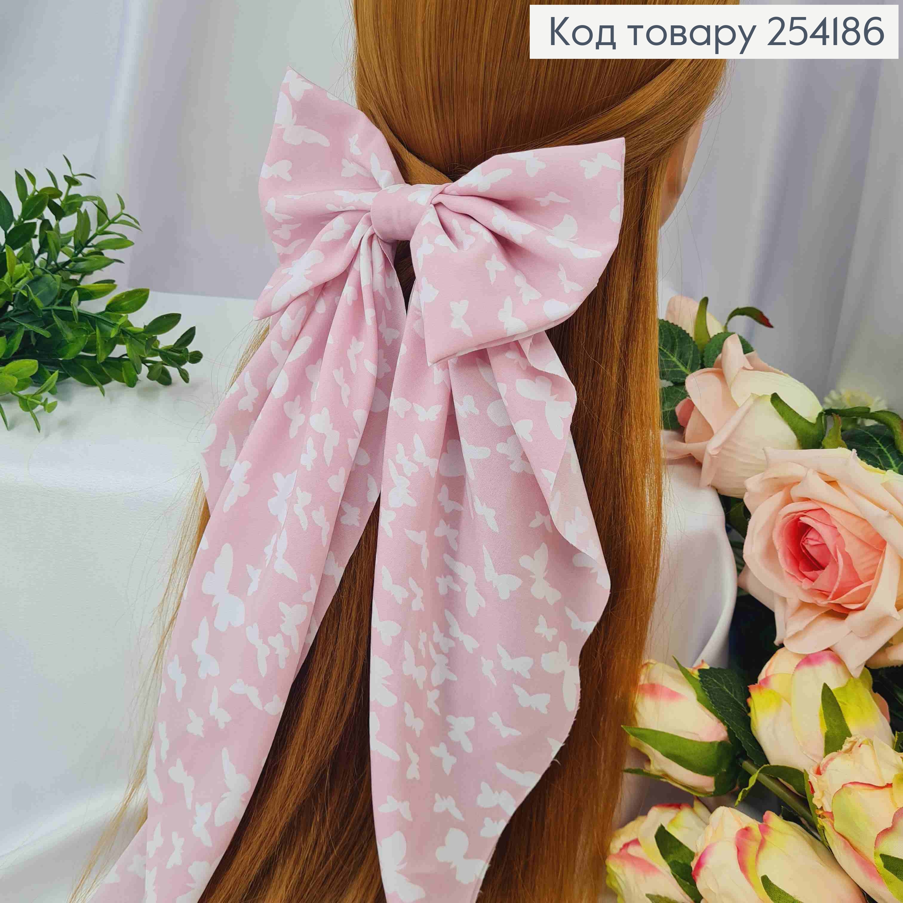 Заколка(7,5см) Бант (15*35см) Розовый, "Бабочки", софт, ручная работа, Украина
