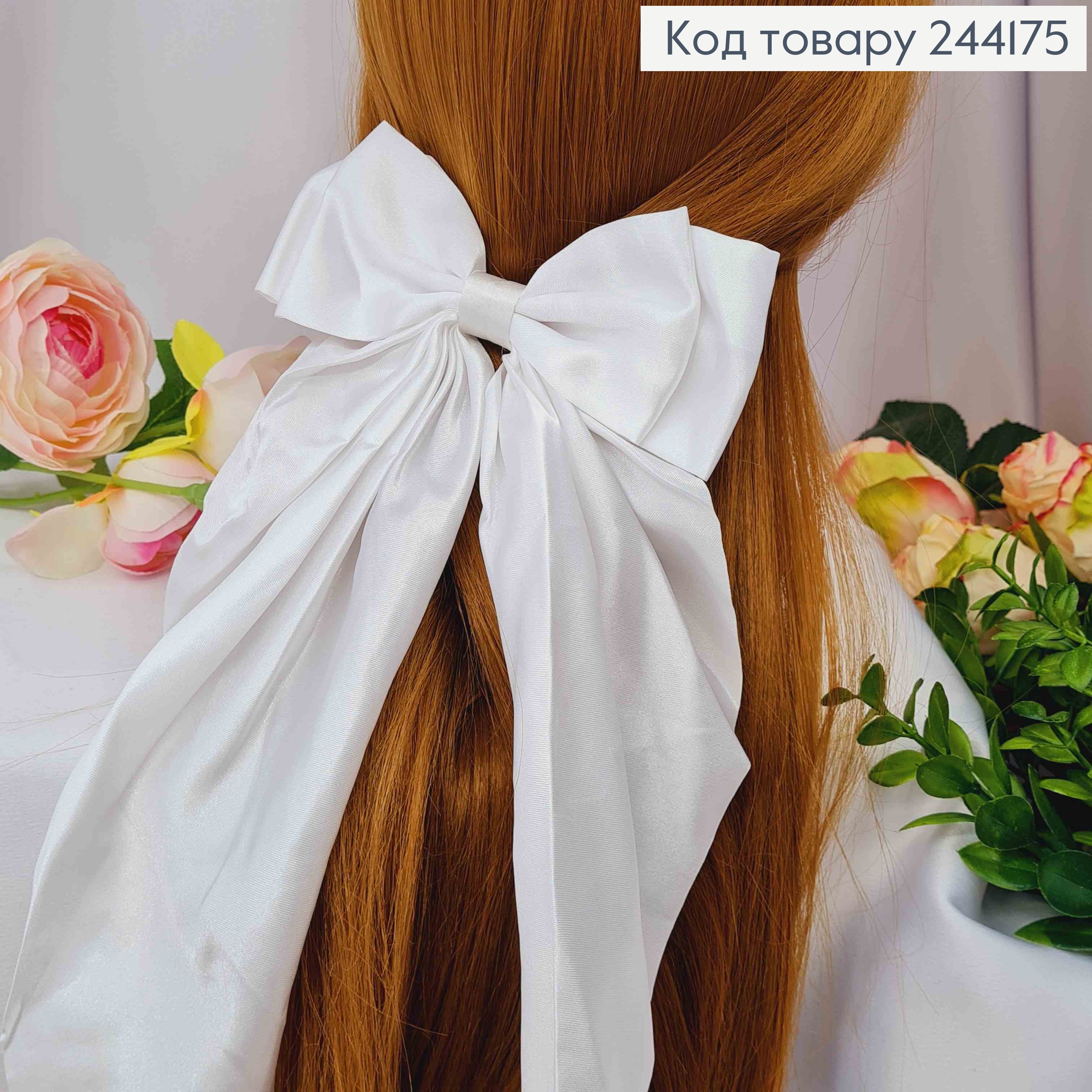 Бант БЕЛОГО цвета, на заколке 5,5см, ткань кружево+атлас, размер 15*25см, Украина. 276158 фото