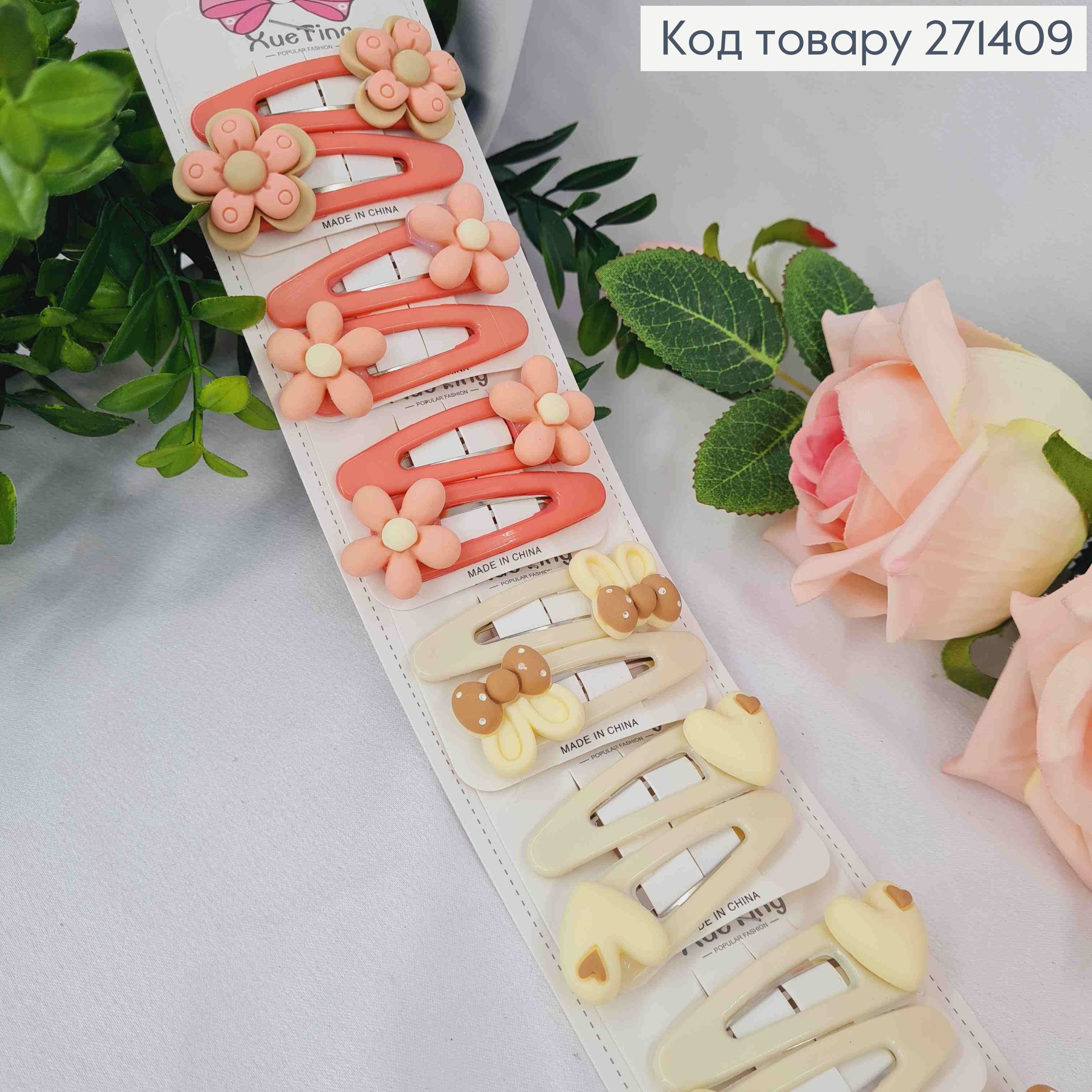 Набор заколка стрела(8шт), Цветок и Бант, Молочно-Пастельного цвета, заколка3,5см, бант4см;6см 271525 фото