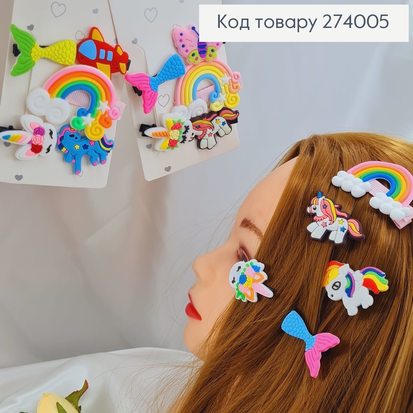Заколка стрела (уточка) силикон РАДУГА+звірята ,5шт (3см 4,5см) а сорт.