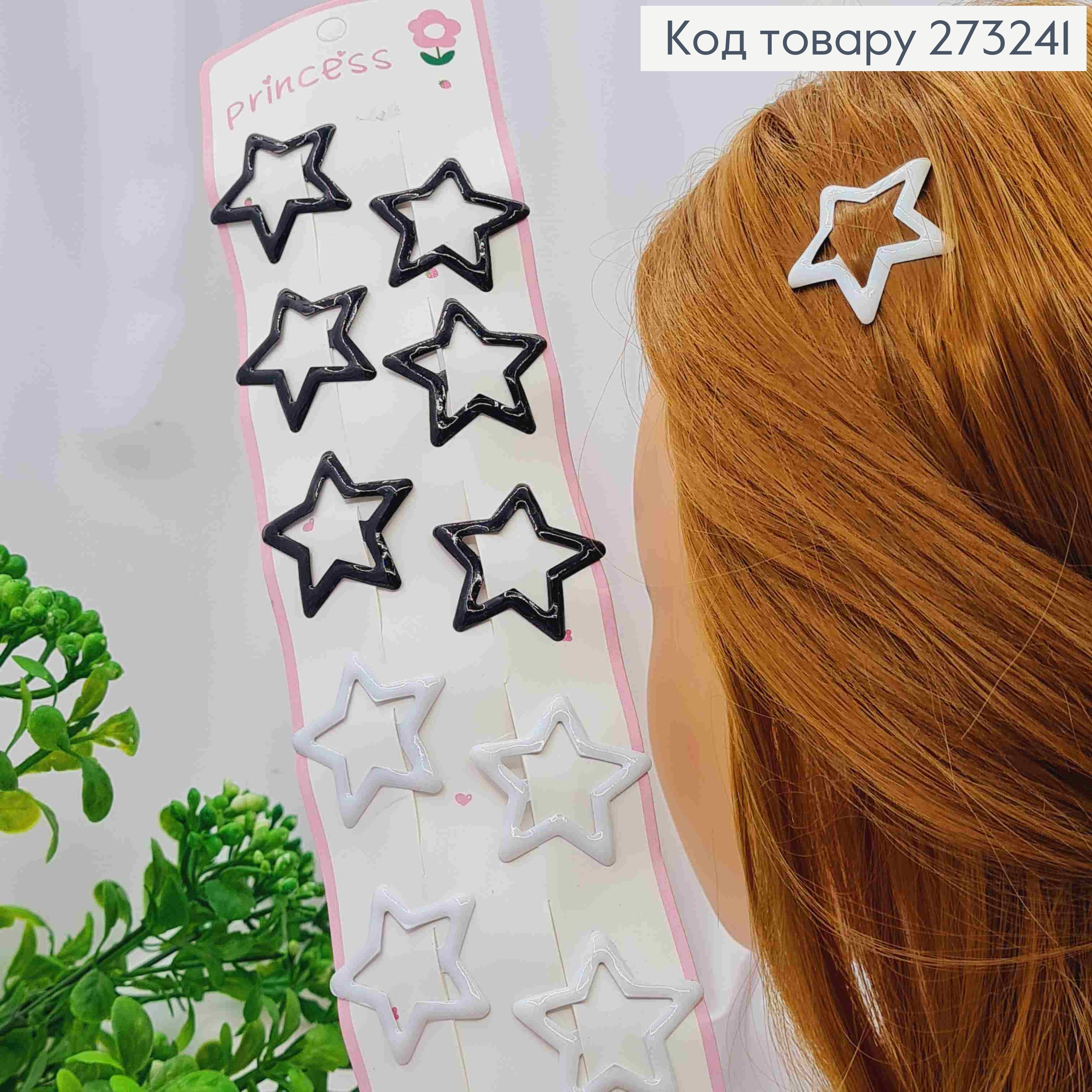Заколки Тик-Так, глянцевые "ЗВЕЗДКИ", Белые/Черные цвета, 3см, 12шт/уп