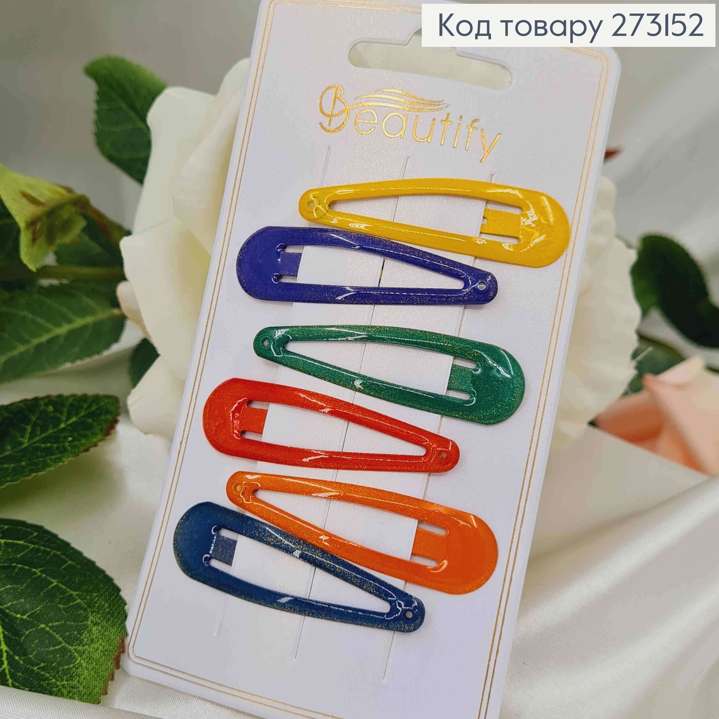 Заколки Тик-Так, цветные с блестками, 5см, 6шт.