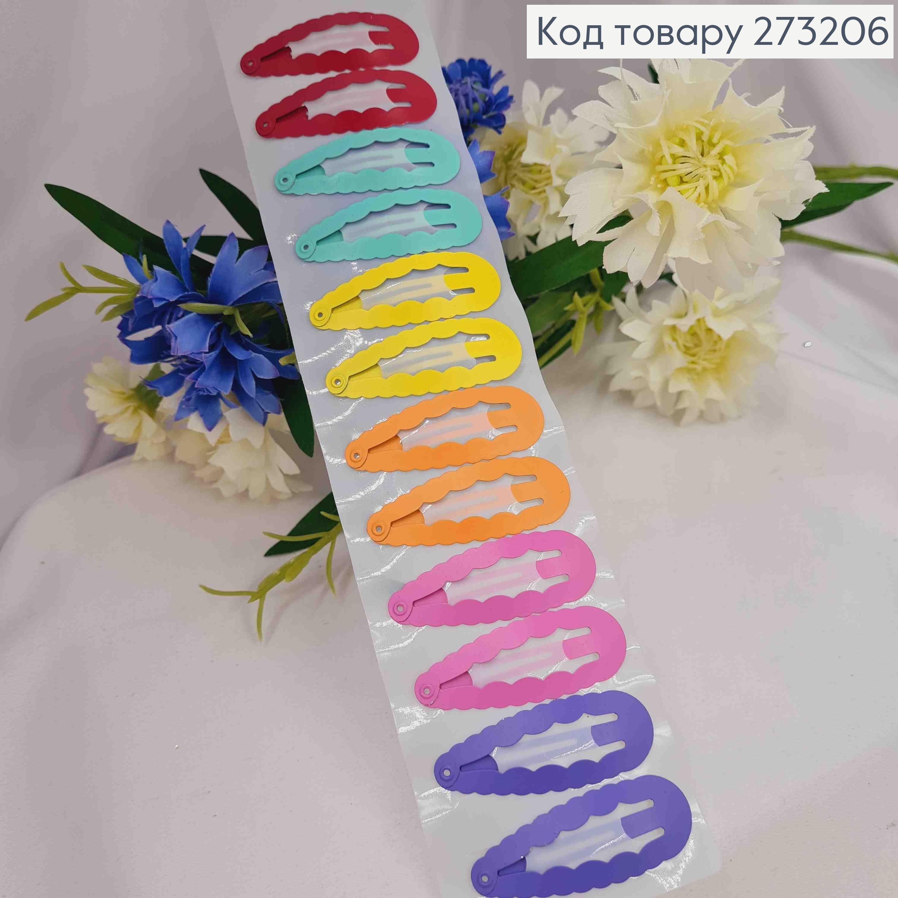 Заколки тик-так с волнистыми краями, ярких цветов, 4,5см, 12шт/уп